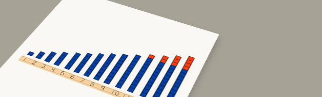 • If the chosen number range includes numbers greater than 10, then make the rods using two colors so that the set of ten is easily identified (see the image in the solution).