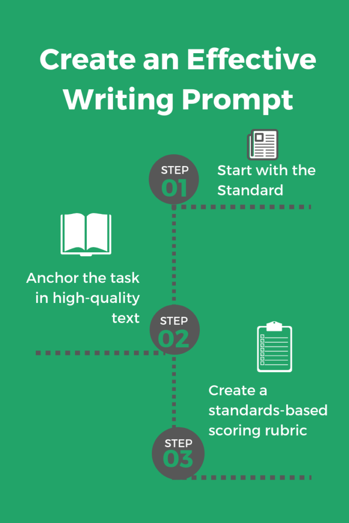 One of my educational mentors, Dr. Olivine Roberts, continually quotes from Richard Elmore’s notion made in Instructional Rounds in Education: A Network Approach to Improving Teaching and Learning, stating that “task predicts performance,” which means students cannot ascend higher than the cognitive demand of a task. If the task is at the cognitive demand of the standard, the appropriate bar for demonstrating proficiency (and possibly mastery) is clearly defined and achievable. Focusing on the standard helps the teacher focus instruction on the writing skills at play in the assignment—setting students up for success. Starting with the standard also ensures that the writing prompt aligns with the cognitive lift and skills of grade-level expectations. For example, our grade 8 writing standard asks students to write arguments to support claims with clear reasons and relevant evidence. In order for students to be able to do this, they must have tasks that allow them to practice this. Writing tasks that ask for personal opinions fail to achieve the dictate of the argumentative writing standard.