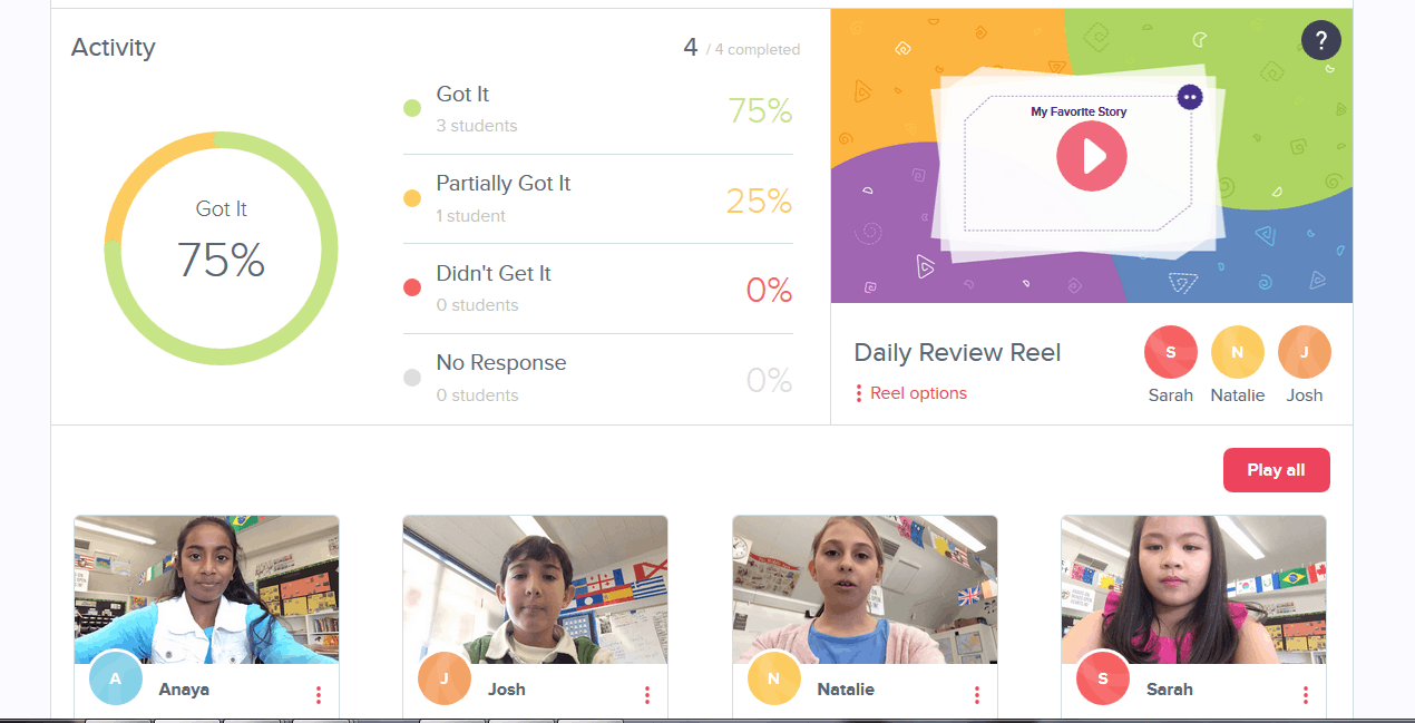Tool 1: Recap.  This is a tool that I discovered in late May of 2016 that can be used in any content area where kids need to explain their thinking. What happens is that teachers provide students with a task; then, students record a video response.  The teacher receives responses and can provide feedback to students on their video as well as share exemplar videos with students in the class.  Using this tool gets at those often-forgotten writing, speaking, and listening standards while also encouraging students to share their thinking and to reflect on their progress as proficient readers and writers.  Here’s one literature activity you can do with this tool: students read a story with several characters in it.  Students adopt one of these characters’ personas.  The teacher asks the two students to have a video-conversation, dialoguing about a topic from the perspectives of the two characters.  Aren’t working on literature? No problem, try this with informational texts: students can be placed in jigsaw fashion with different articles arranged around a theme. Students can record their key insights and then the videos can be used to compare and contrast as well as document evidence to support a claim or argument.