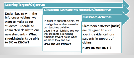 Evidence-centered design begins with inferences that we want to make about student learning connected to standards and follows with a collection of evidence (i.e., an assessment) that shows how we know that students are making progress toward doing what we claim they can do.