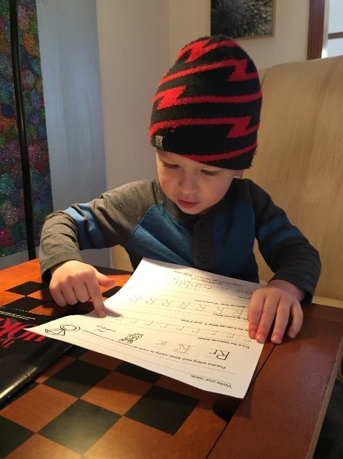 My 3-year-old is always on the move, rarely still long enough to show an interest in learning. So, I was surprised to walk in on him staring at his sister’s first grade worksheet- a handwriting practice sheet for the letter “r.” “Rrr….rrrr…rrrr” they said together, as he pointed to each r on the page, about twenty-five in all. “I’m reading!” he shouted with pride.